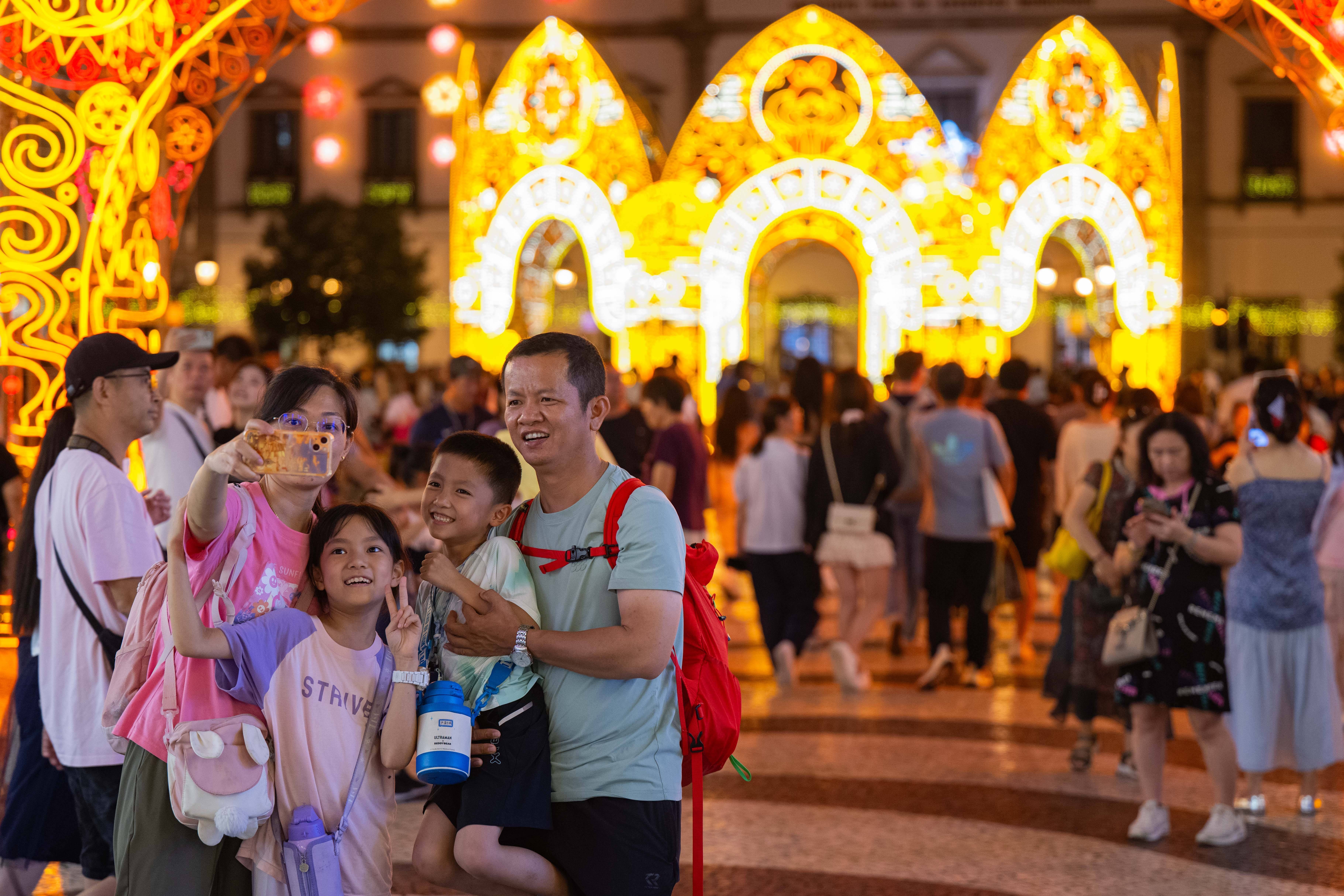 10月6日,游客在澳门议事亭前地游览、拍照。新华社发(张金加摄)截至2日23时,今年入境澳门旅客累计已达3000万人次,较去年提前40天,与2019年同期相若。节前,治安警察局预计10月1日至8日,入境旅客约120万人次,各口岸总出入境人次将达560万至600万人次。