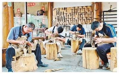 r和善均的小院,成为许多游客“人生第一件非遗作品”的诞生地。来自成都的20户家庭,年年带孩子来学习打制铜器。“政策支持让研学体验成为非遗技艺活态传承的新路子,也为培养下一代传承者提供内生动力。”和善均说。